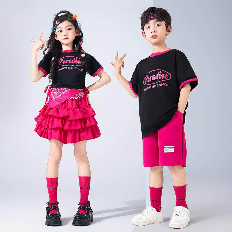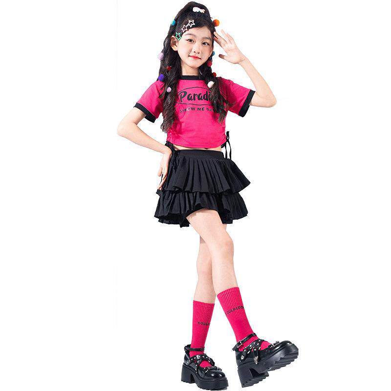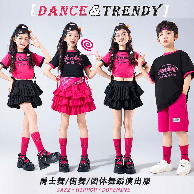 📚 女童夏款短袖女宝爵士舞舞蹈童装儿童圆领街舞多巴胺糖果色演出服