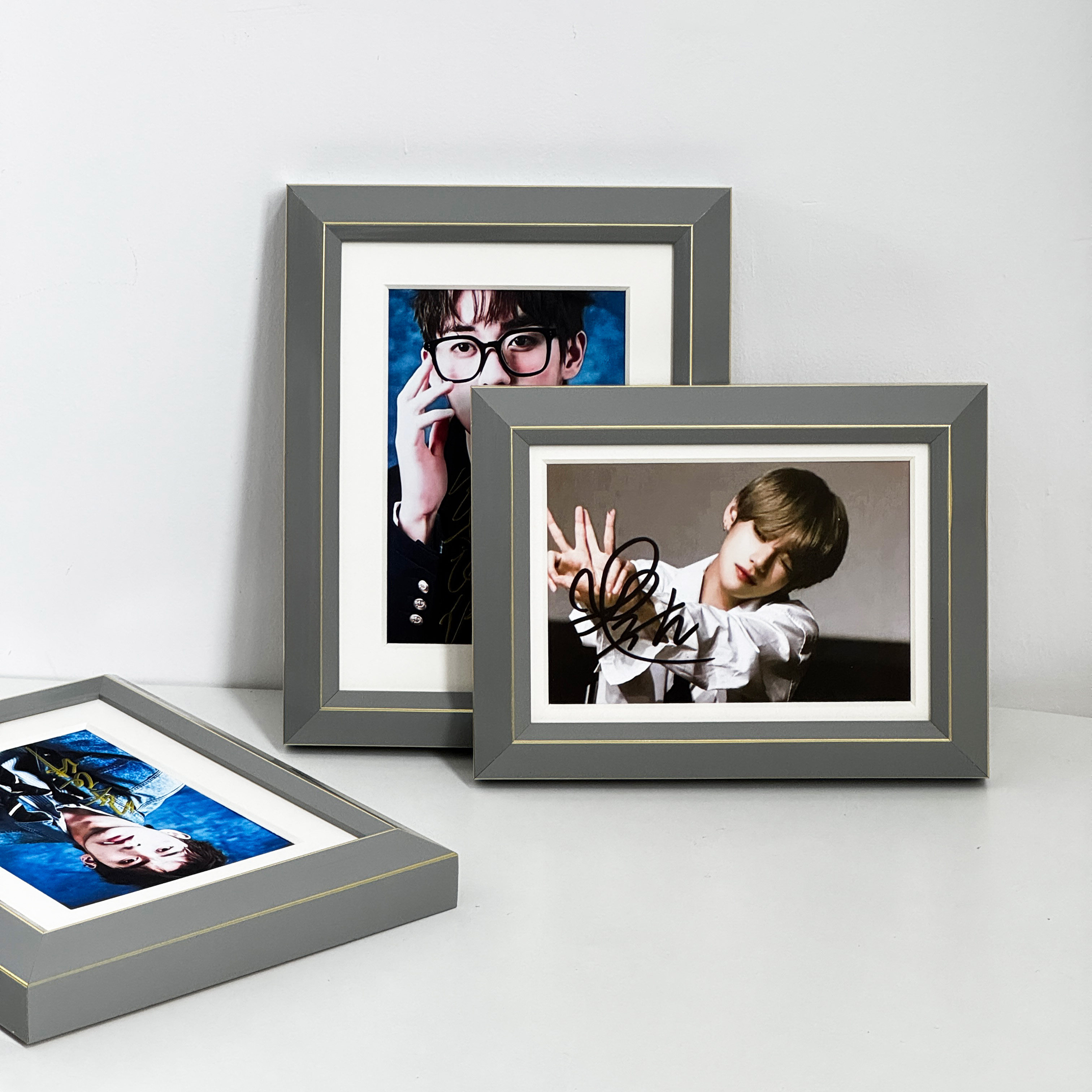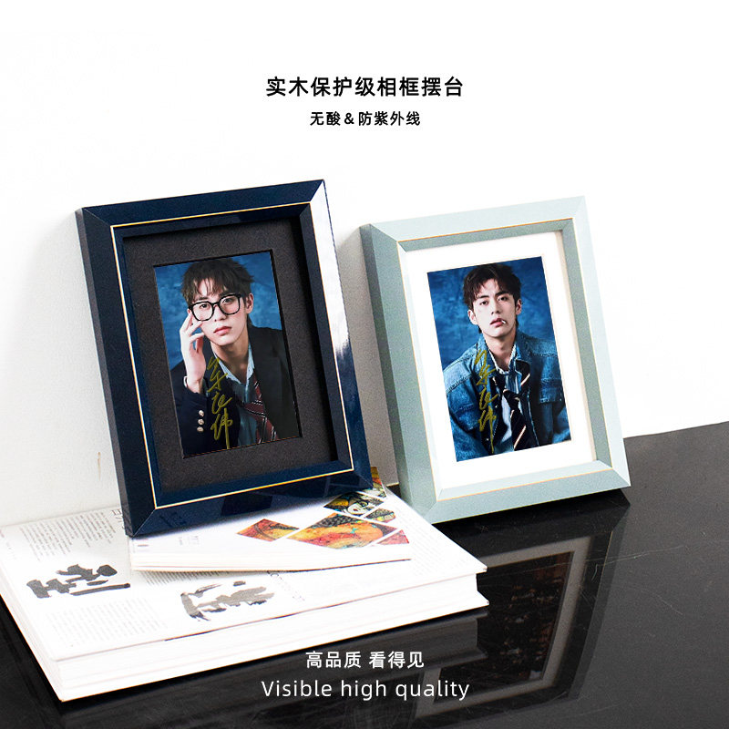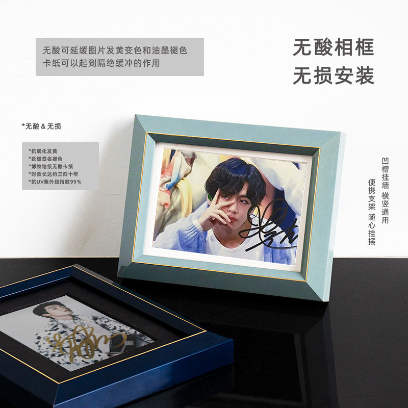 📚 签名照收藏实木蓝色相框摆台亲签保护无酸卡纸照片定制不反光玻璃