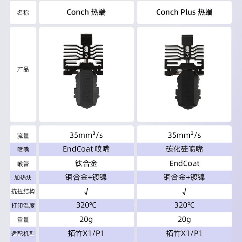 📚 Phaetus耐磨碳纤维3D打印海螺Conch Plus拓竹X1/P1热端碳化硅喷嘴