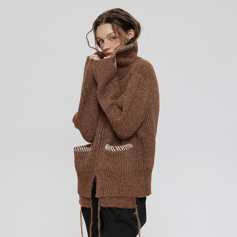 📚 LOSTCTRL「慵懒周末」美拉德抽绳刺绣双拉链针织开衫男女秋冬毛衣