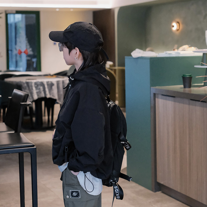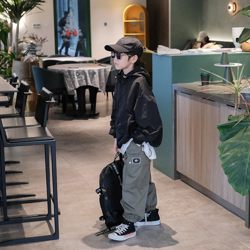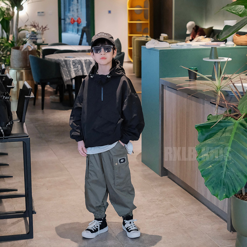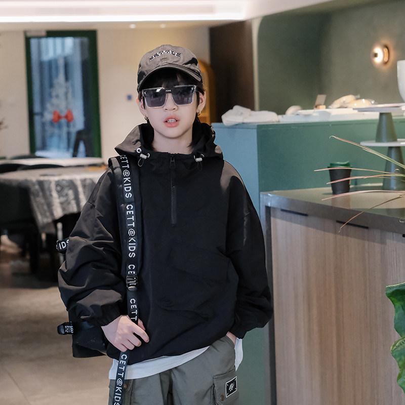 📚 男童外套春夏新儿童冲锋衣韩版男孩夹克女童半拉链连帽上衣潮