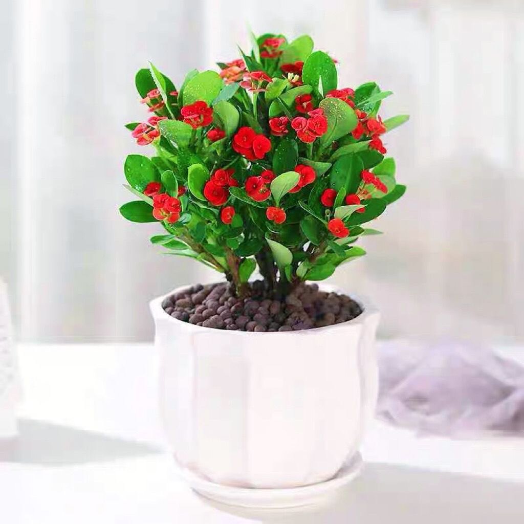 📚 虎刺梅多肉盆栽老桩铁海棠开花室内办公室桌面花卉