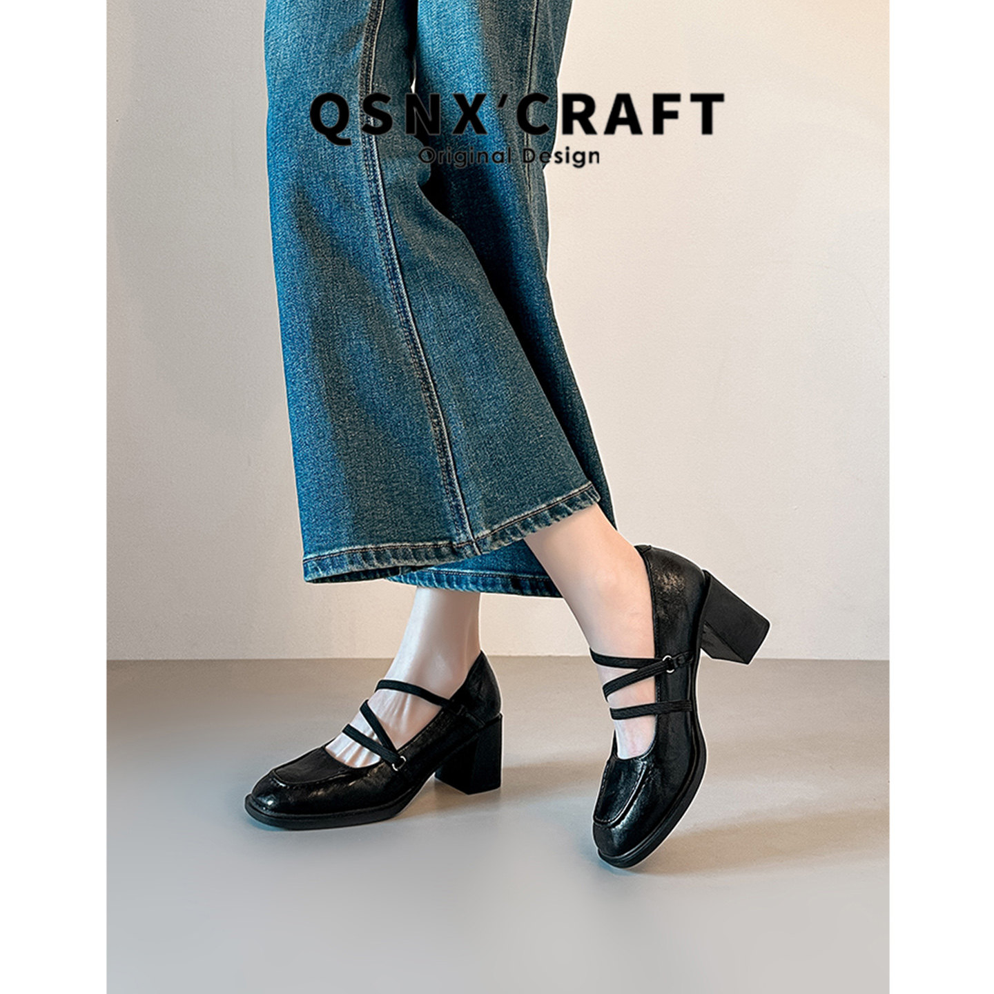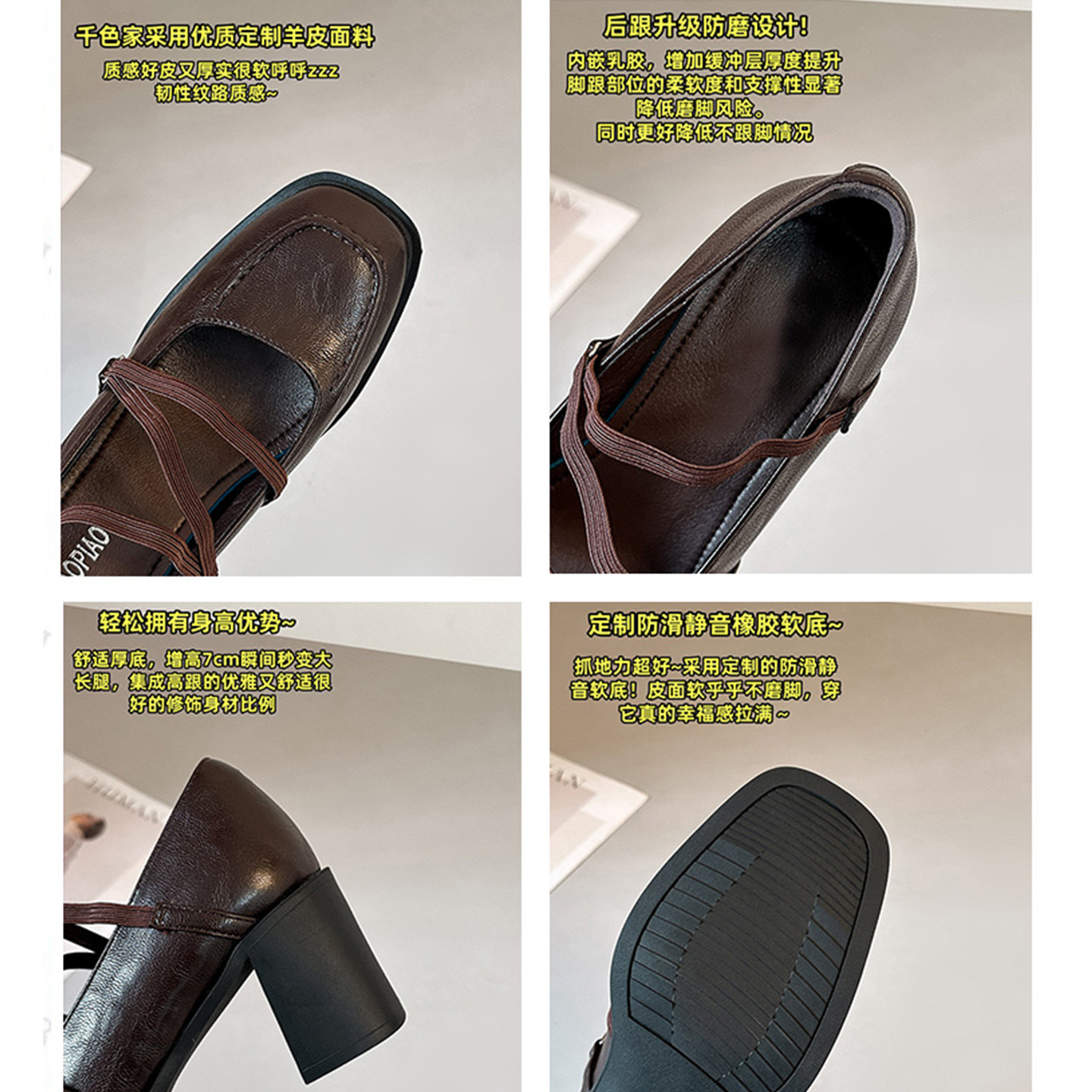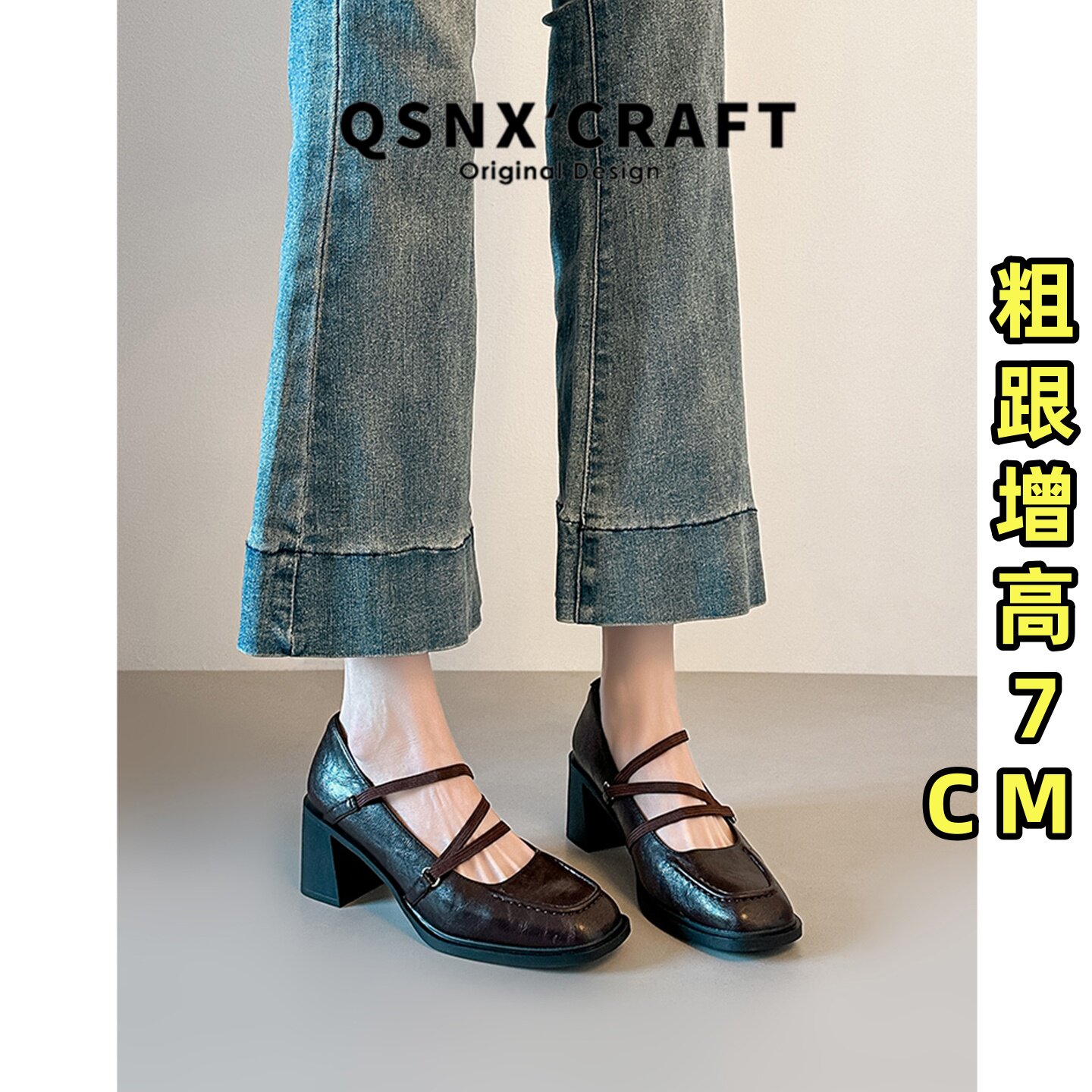 📚 羊皮版~复古交叉扣带玛丽珍鞋女2025新款粗跟方头通勤单鞋配裙子