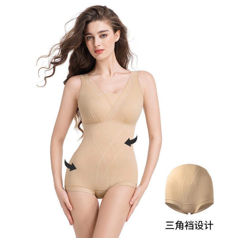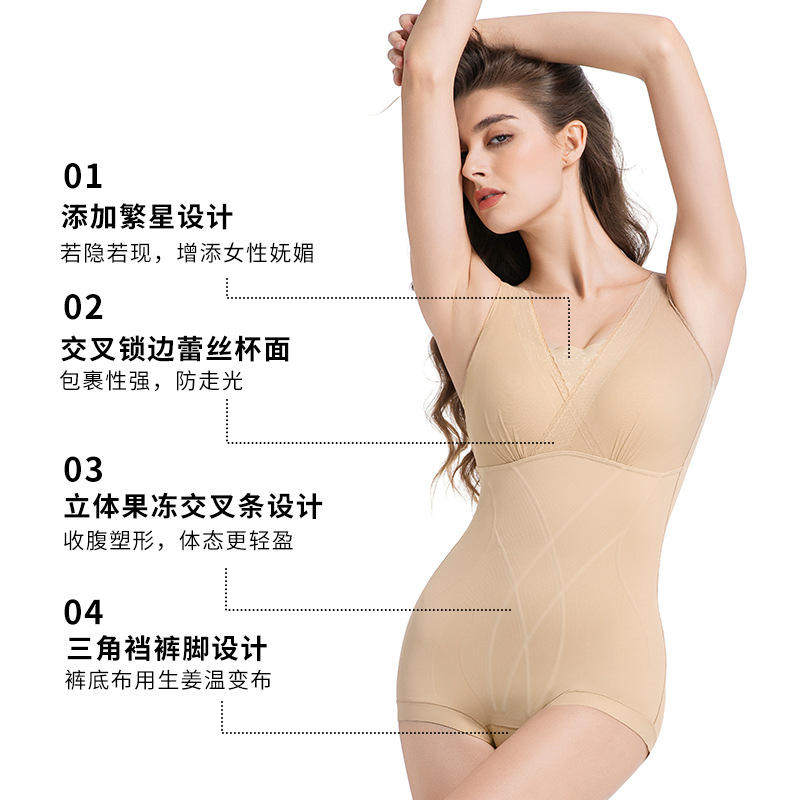 📚 秋冬爆款三角锁边塑身衣繁星设计交叉锁边蕾丝杯面果冻后脱连体衣