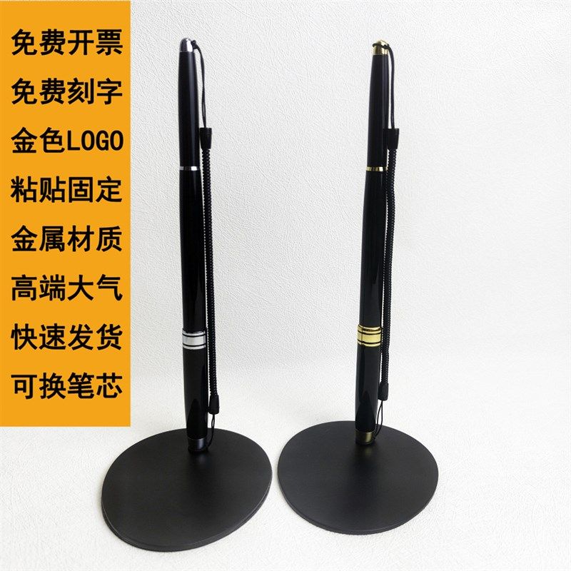 📚 桌面签字笔刻字定制LOGO签约仪式笔带线高档商务金属黑色固定台笔