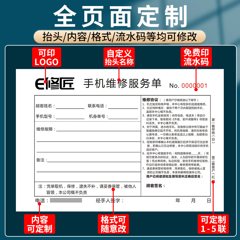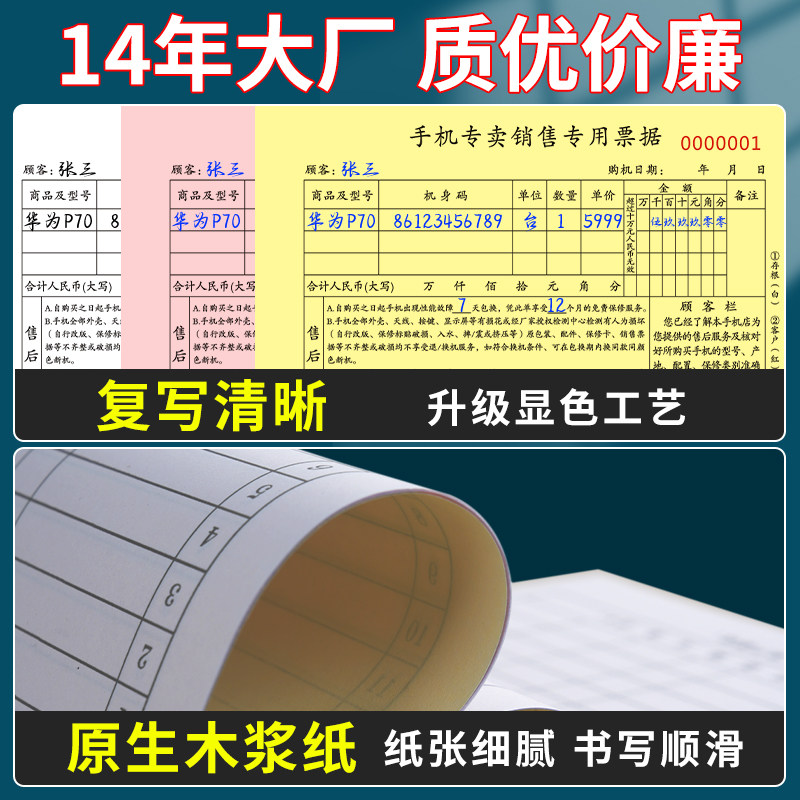📚 手机销售专用票据票本二联售后维修单据保修受理单买卖开单本中国移动联通电信通讯收据小票定制手机店销售单