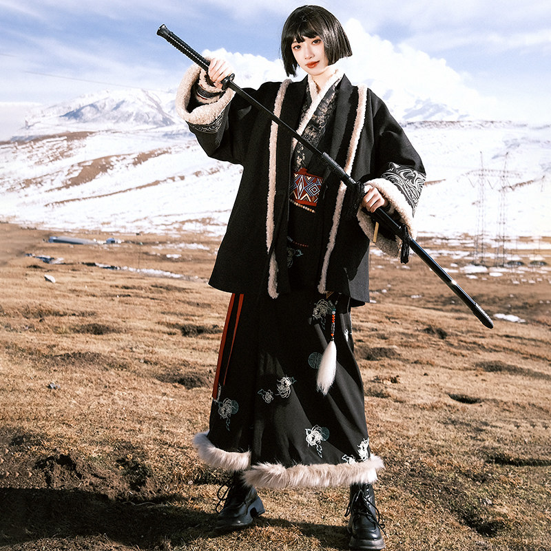 📚 花朝记|苍弦|冬季加绒汉服|黑色甜酷|宋制对襟袄飞机袖两片裙