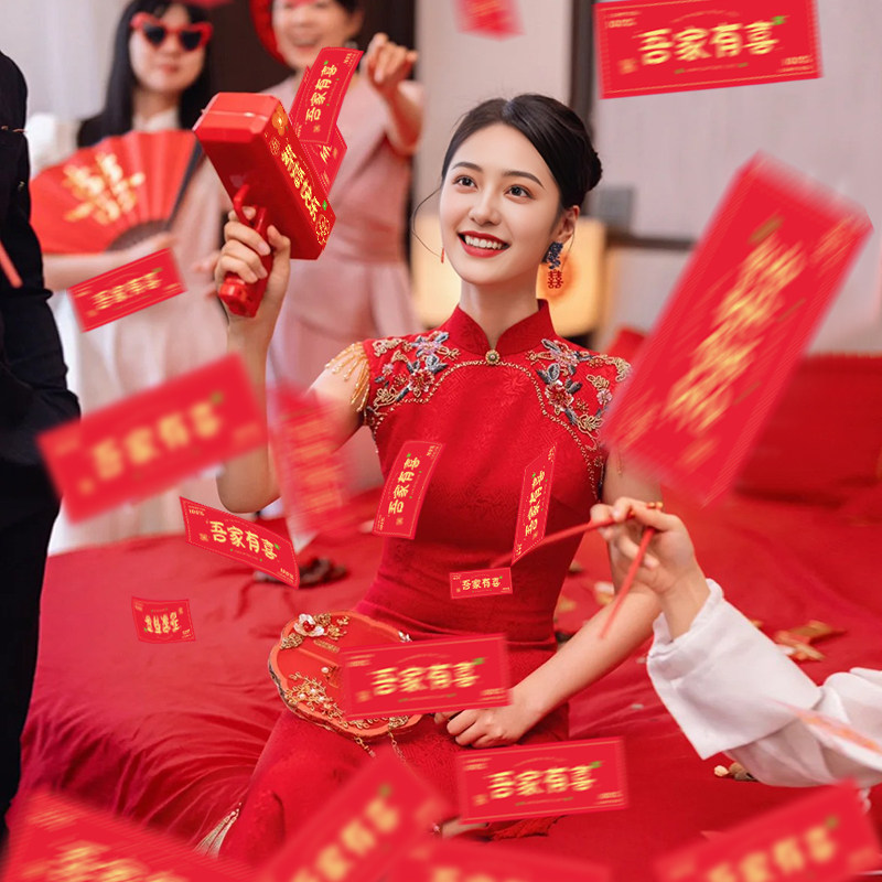 📚 接亲小游戏结婚道具喷钱枪筷子夹喜钞创意婚礼整蛊新郎伴郎氛围感