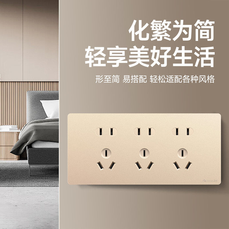 📚 飞雕118型开关插座面板家用暗装插座面板多孔六孔9孔12孔格调金
