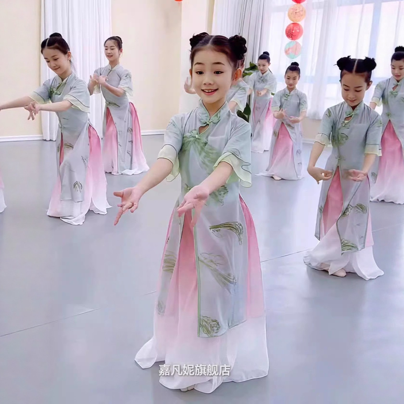 📚 扇语春风演出服城外小月亮灯影江南舞蹈服儿童古典舞旗袍元旦表演