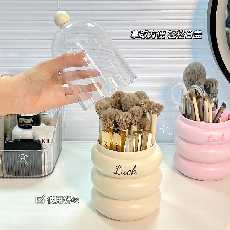 📚 化妆刷收纳盒防尘高级感桌面眉笔口红分格收纳筒带盖大容量置物架