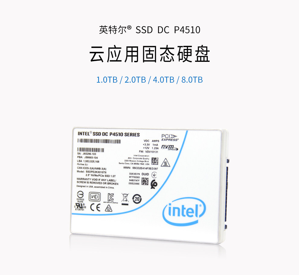 📚 Intel/英特尔 P4510 2T 4T 8T 2.5寸 U2 NVME 企业级SSD固态硬盘