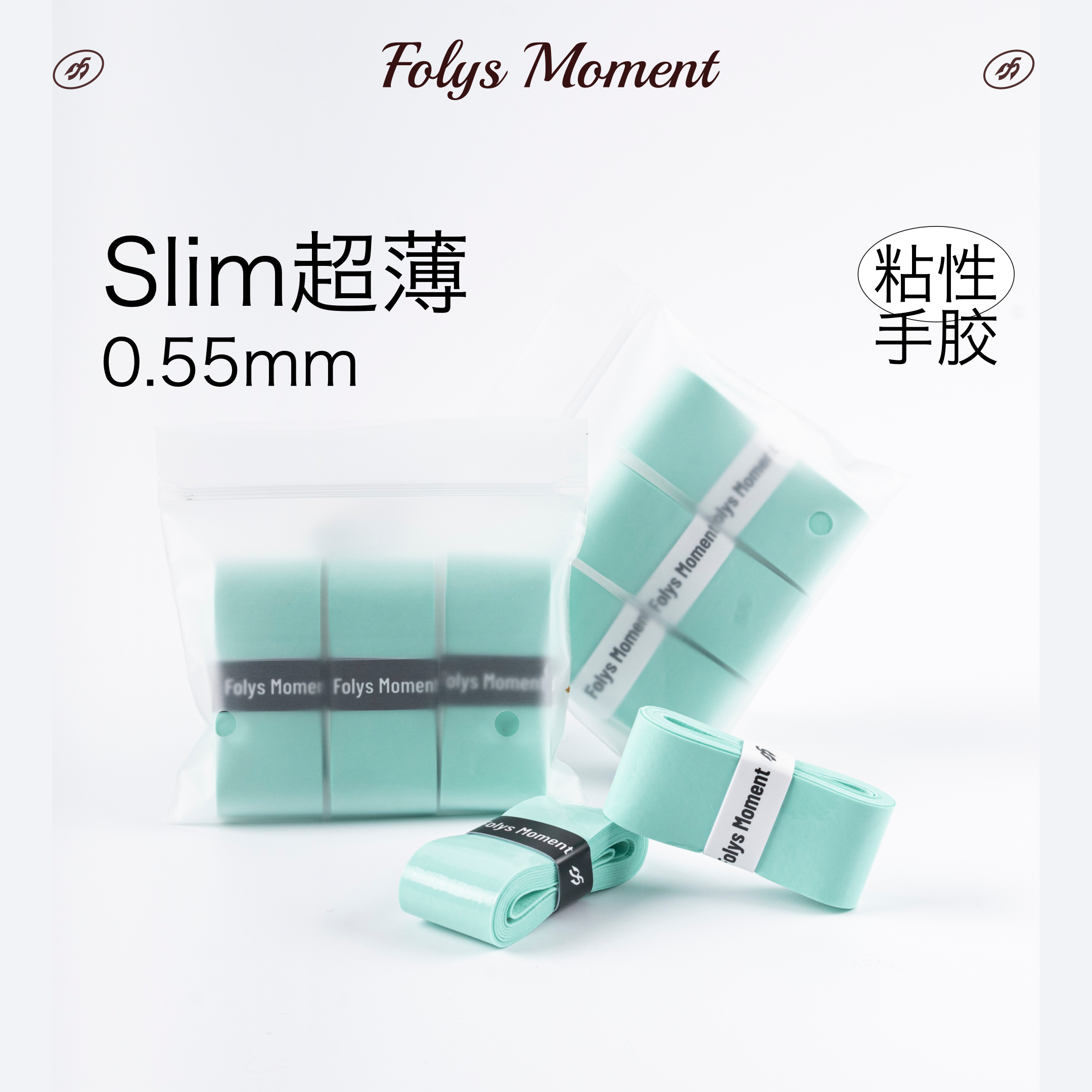 📚 FolysMoment|Slim0.55超薄粘性手胶薄荷绿网球羽毛球吸汗防滑