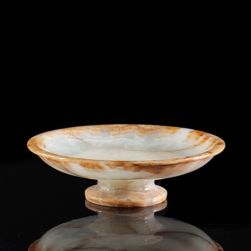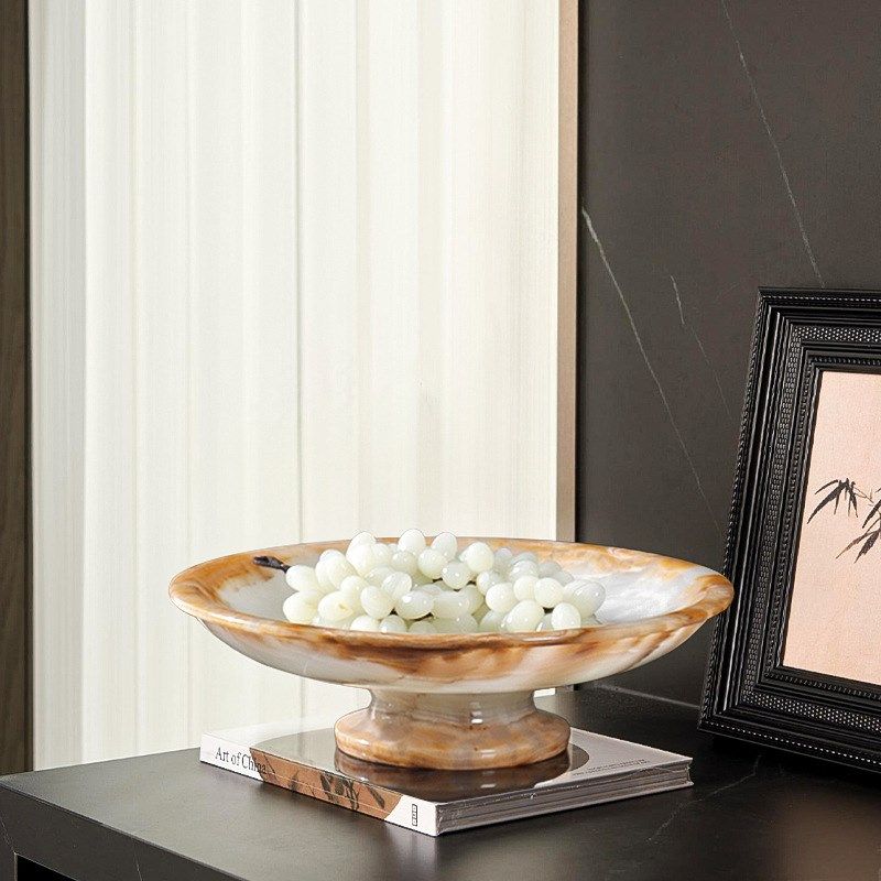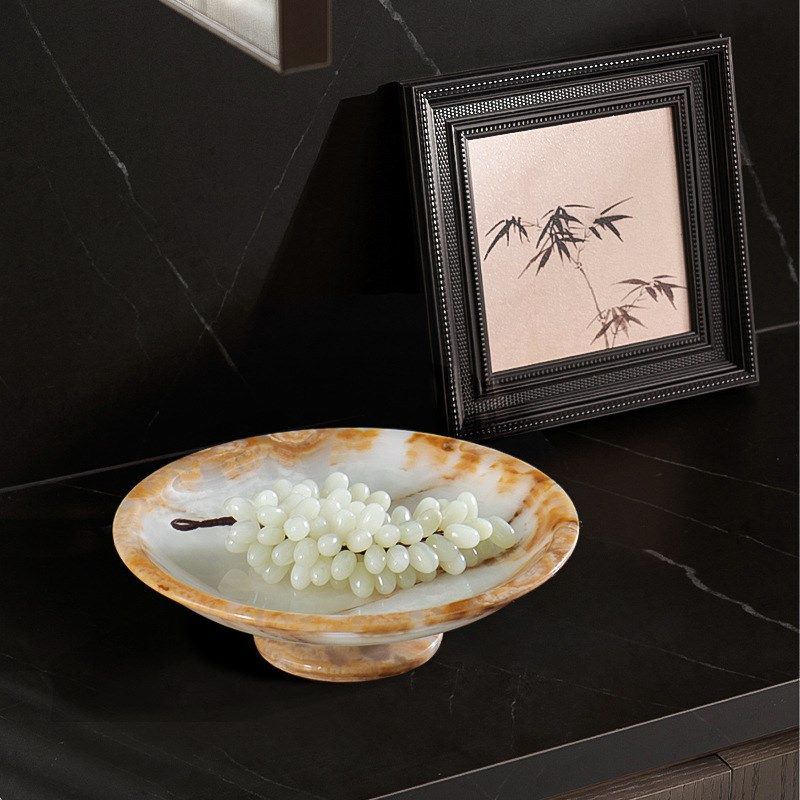 📚 天然玉石果盘餐点盘小众轻奢高端家用茶几高脚S托盘中古风收纳盘