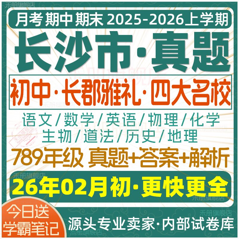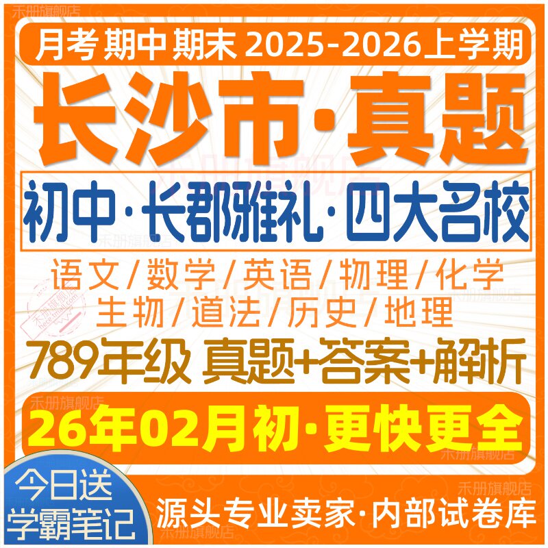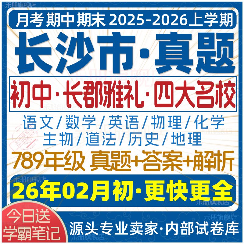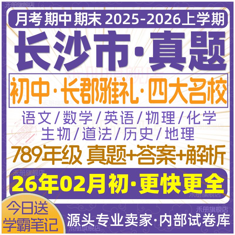 📚 2026新版长沙市初中月考期中期末长郡雅礼四大名校真题七八九年级初一初二初三上册下册数学物理语文英语化学生物地理历史道法试卷