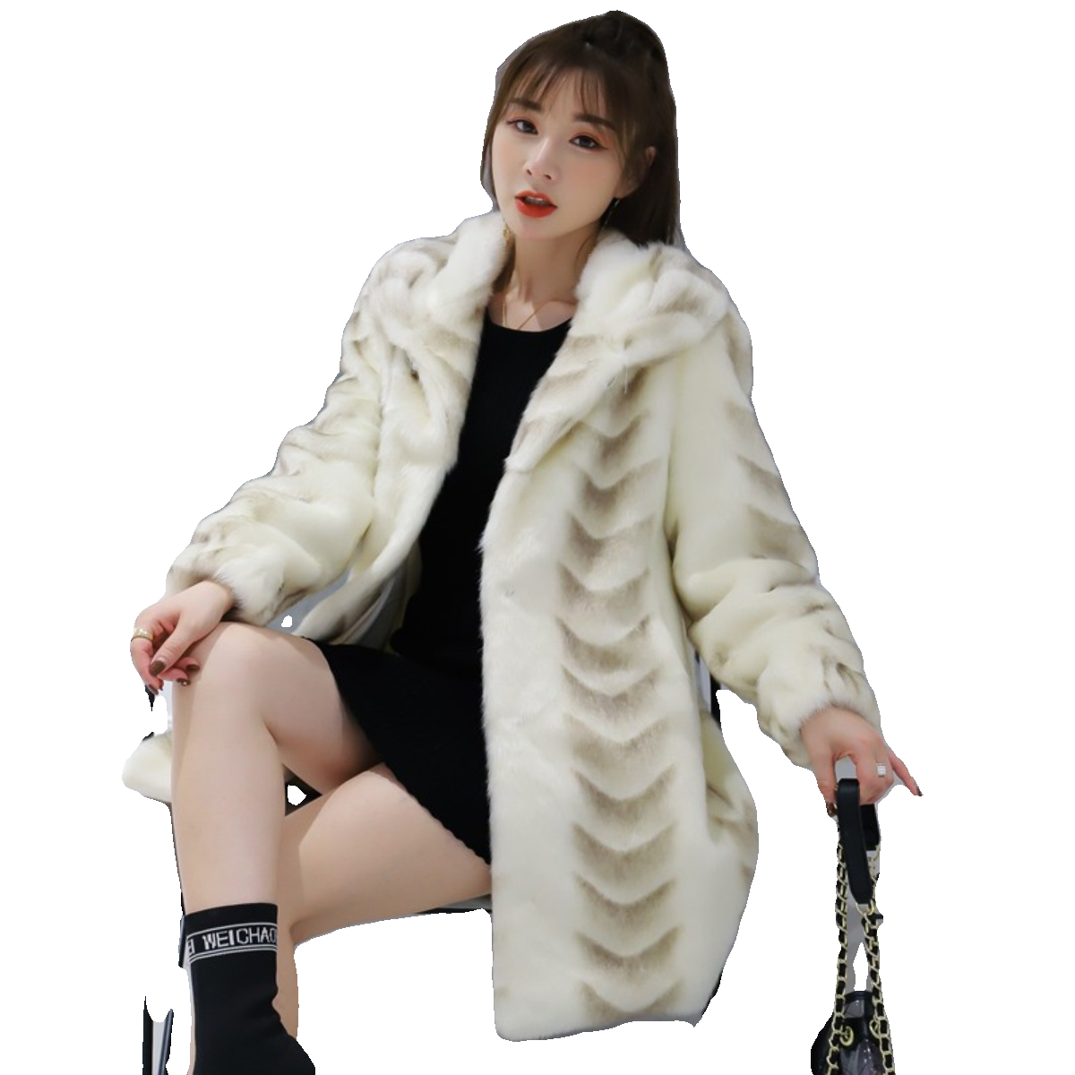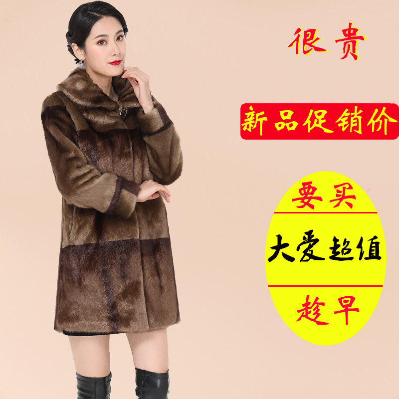 📚 海宁进口貂皮大衣女整貂新年轻时尚水貂毛白色立领皮草中长款外套