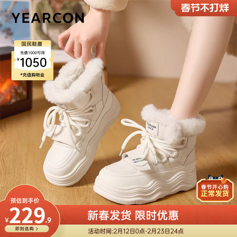 📚 意尔康女鞋2025冬季厚底东北雪地靴户外休闲加厚加绒保暖棉鞋高帮