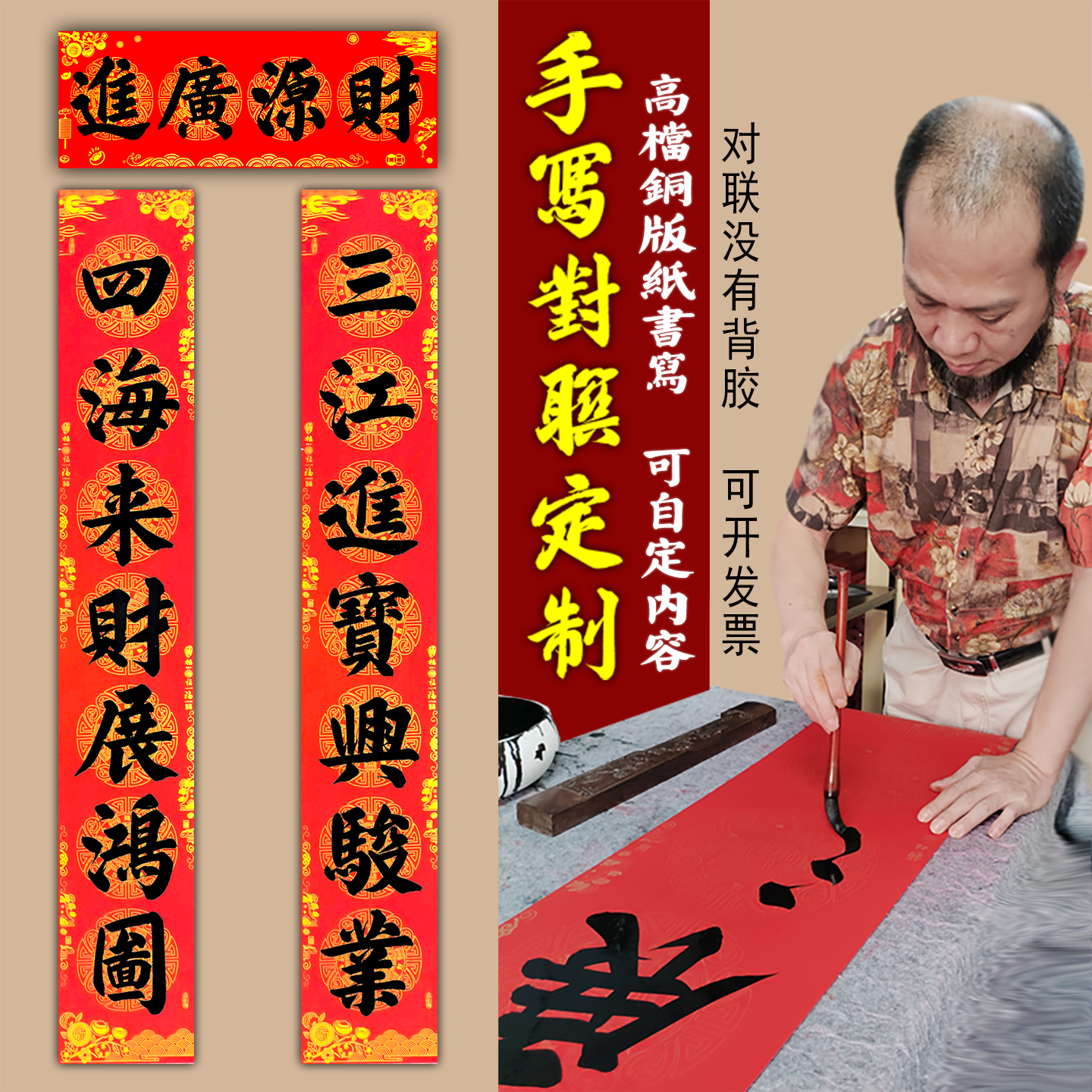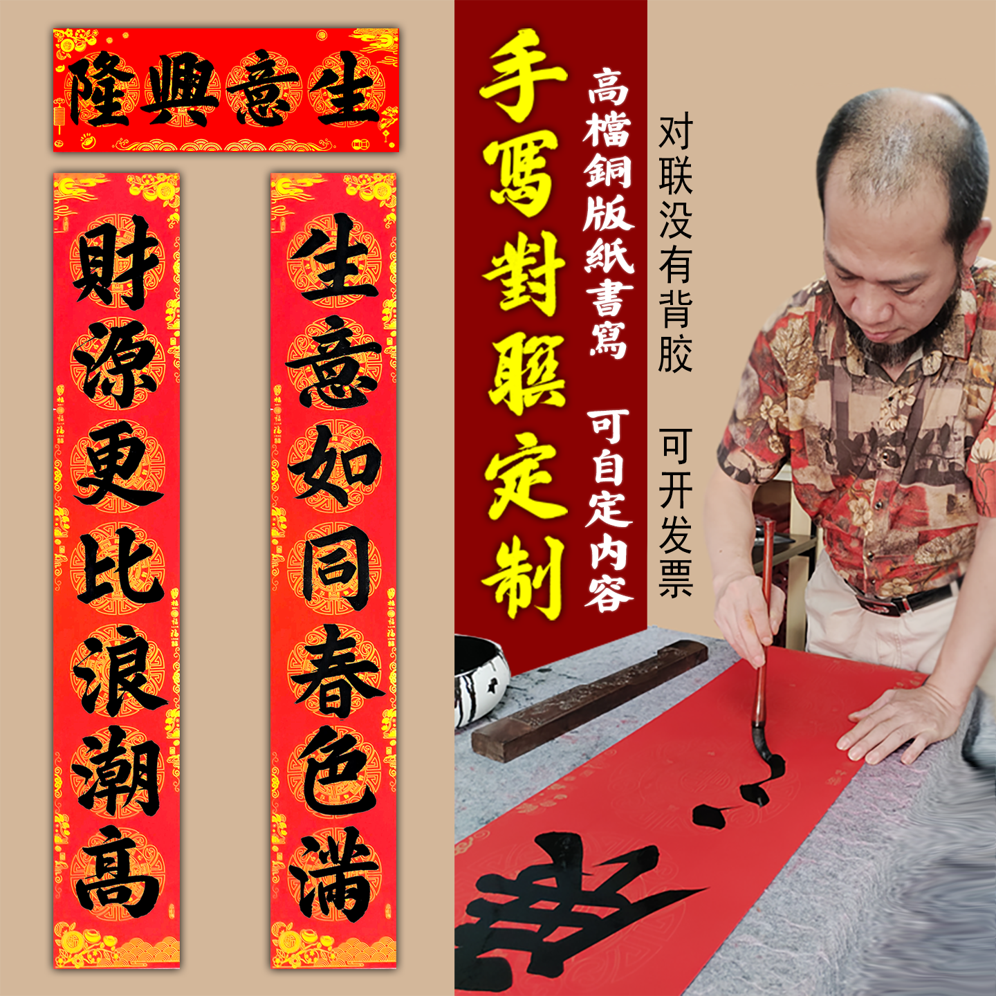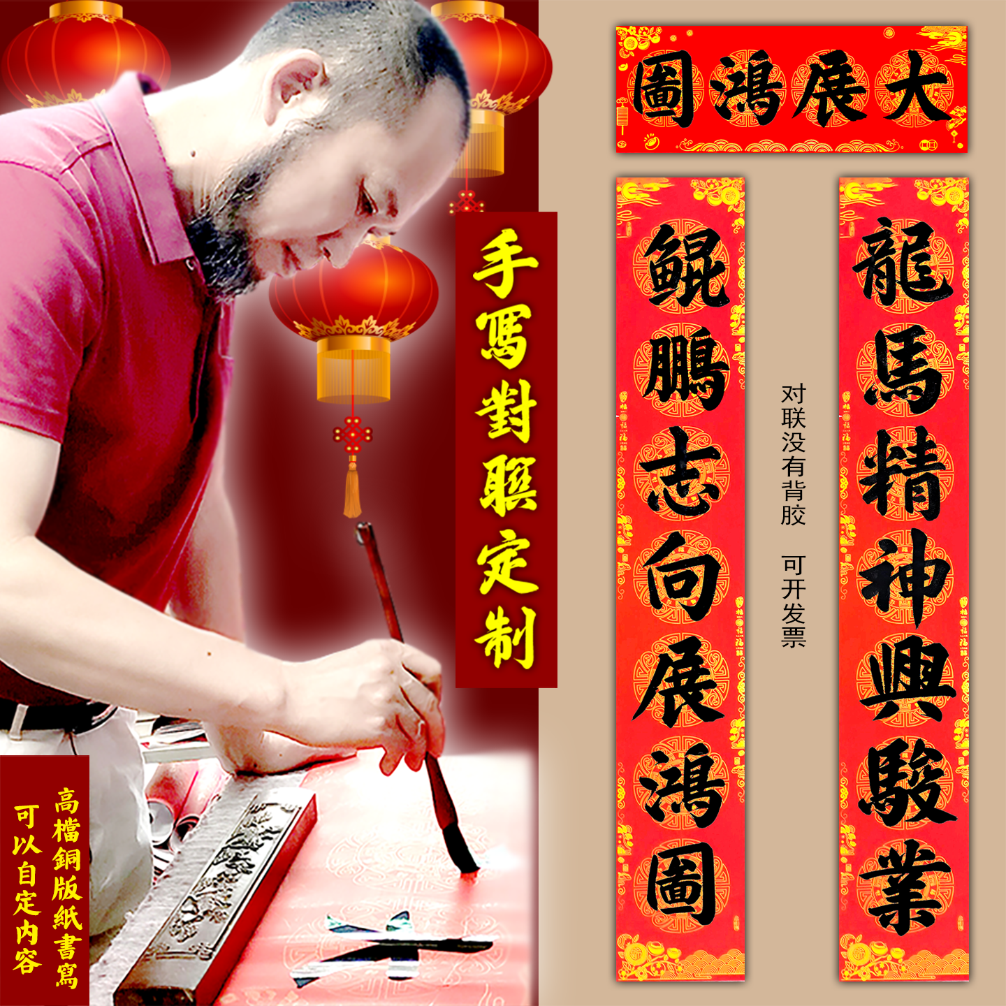 📚 手写对联定制公司开业对联书法黑字定制春联2026马年铜版纸对联