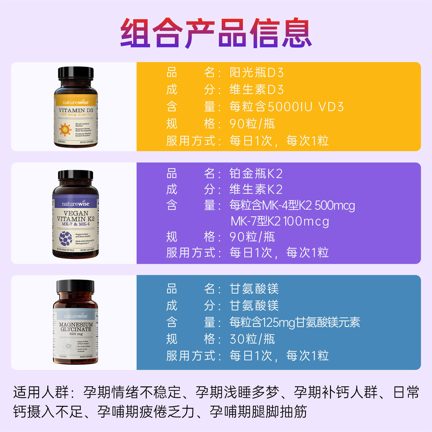📚 【D3K2镁】Naturewise阳光瓶5000iu维生素D3维生素K2甘氨酸镁
