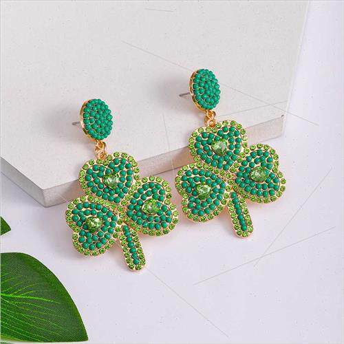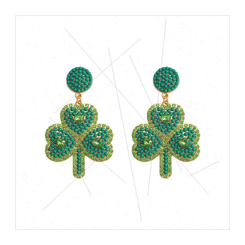 📚 Europe St. Patrick Day Green Shamrock Rice Bead Earrings Per
