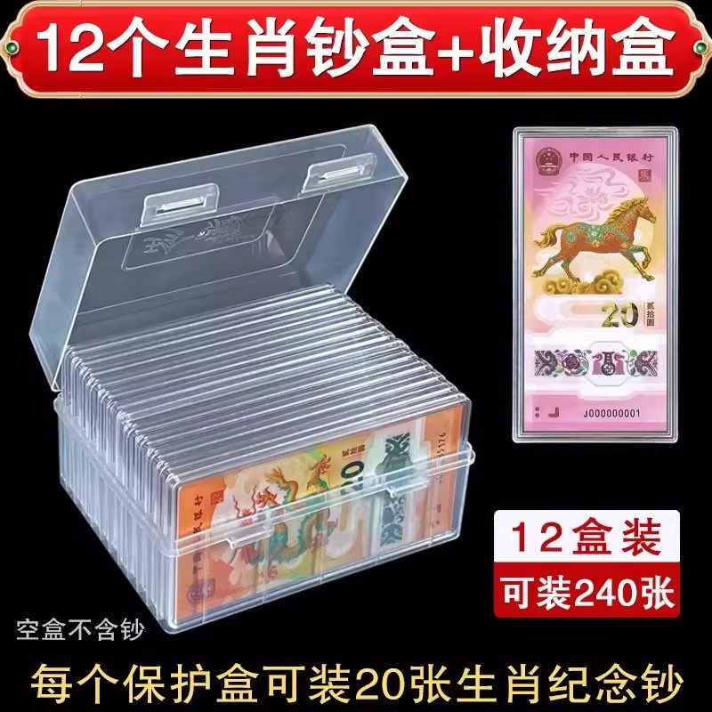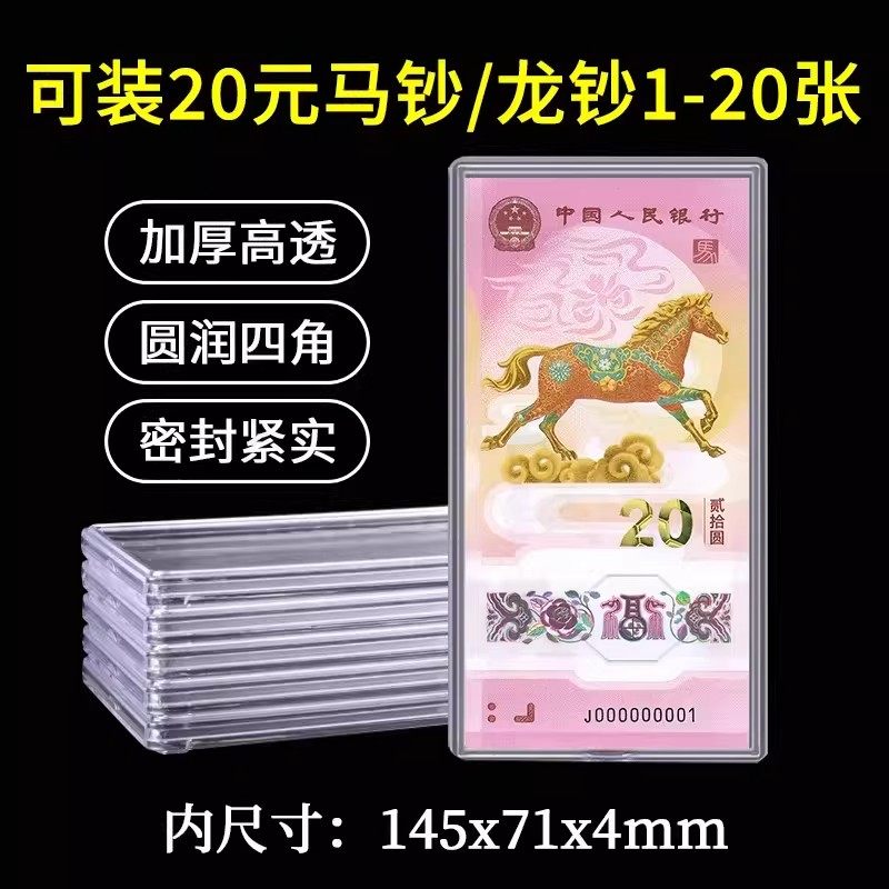 📚 马年生肖纪念钞马钞20元纸币钱币收藏盒1-20张收纳盒龙年钞保护盒
