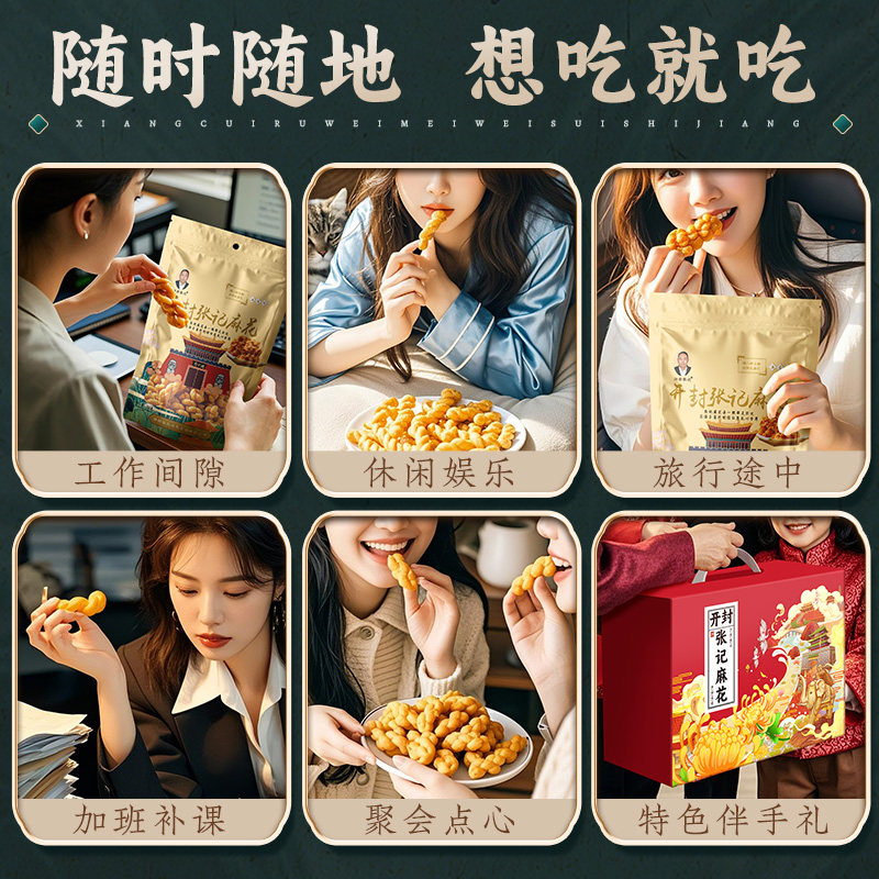 📚 张记麻花总店开封书店街汴发小麻花香酥脆传统河南特产礼盒小包装