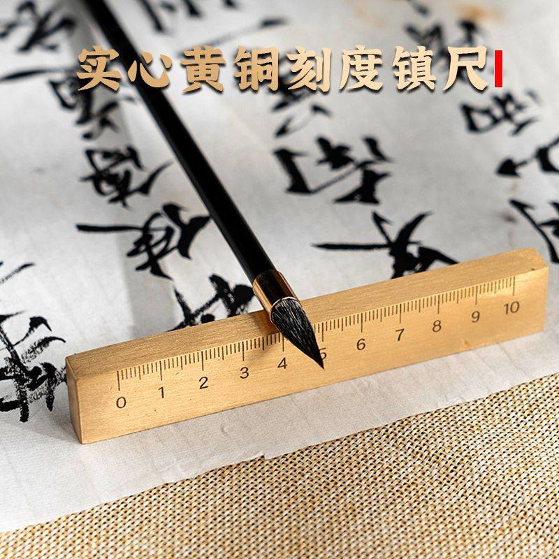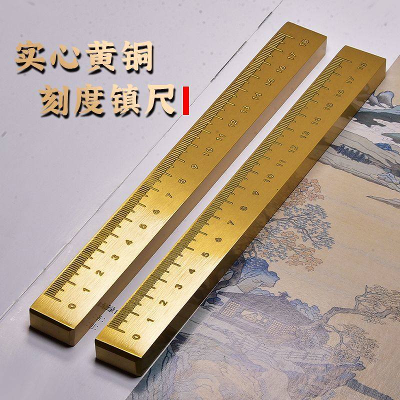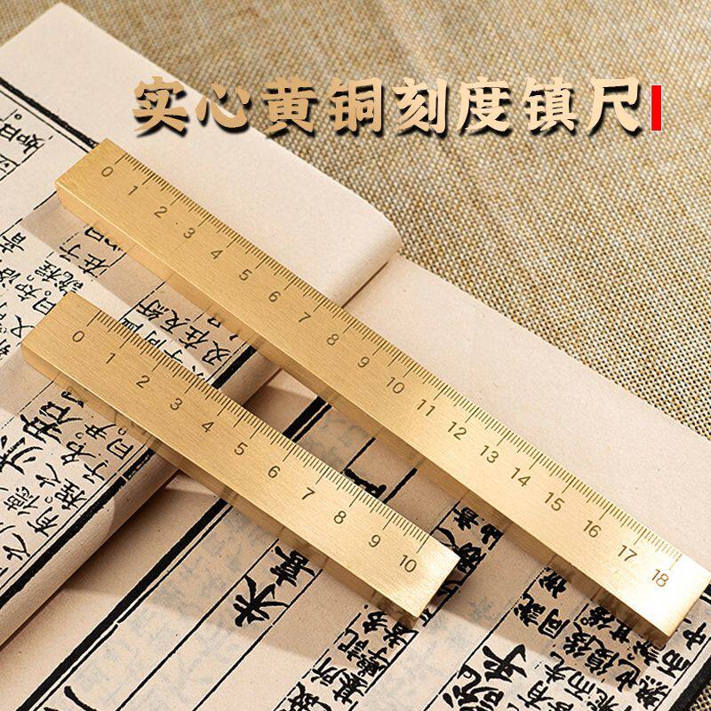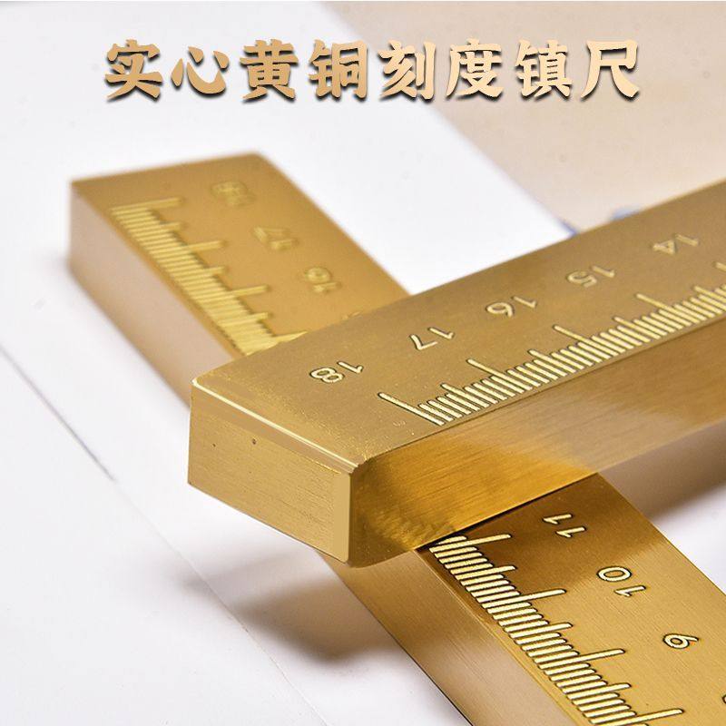 📚 18cm全铜黄铜镇纸文房四宝书法镇尺压纸尺纸镇多功能毛笔笔搁直尺