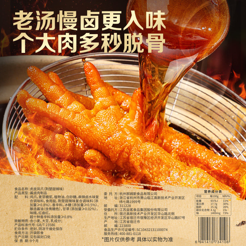 28¥ CZ321 vu1VUQRofbg¥ https://m.tb.cn/h.7ts5V4m 【满减】百草味虎皮凤爪160g鸡爪鸡肉休闲小吃解馋零食卤味熟食 --------------------- 【原售价】69.9元 【现售价】23.8元。