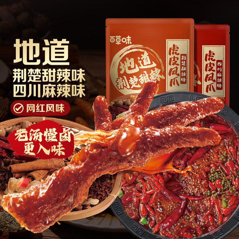 📚 【满减】百草味虎皮凤爪160g鸡爪鸡肉休闲小吃解馋零食卤味熟食