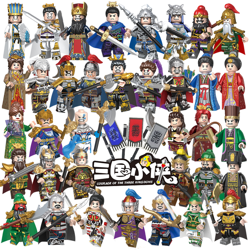 📚 迪库关羽演义三国小侠全套古代士兵人仔袁绍铭牌五虎拼装积木玩具