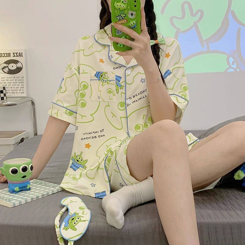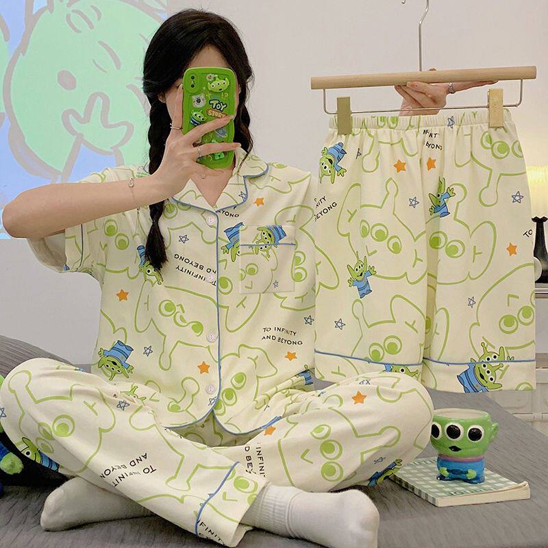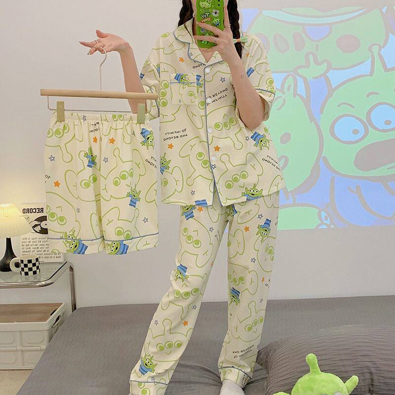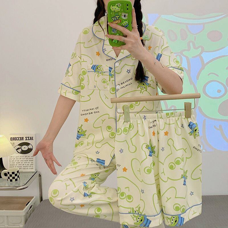 📚 夏季新款三眼怪睡衣女款短袖三件套装时尚网红ins风可外穿家居服