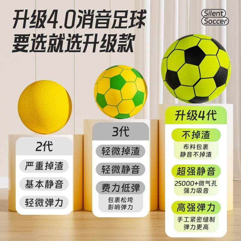📚 第四代静音足球室内儿童玩具室内实心海绵足球无声拍拍球足球门