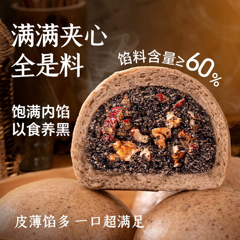 📚 黑芝麻核桃杂粮包纯手工无糖精全麦孕妇儿童低脂早餐馒头豆沙包子