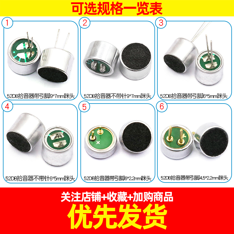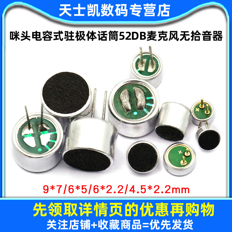📚 咪头6*5mm 7*9 6*2.2电容式驻极体话筒52DB麦克风无拾音器传声器