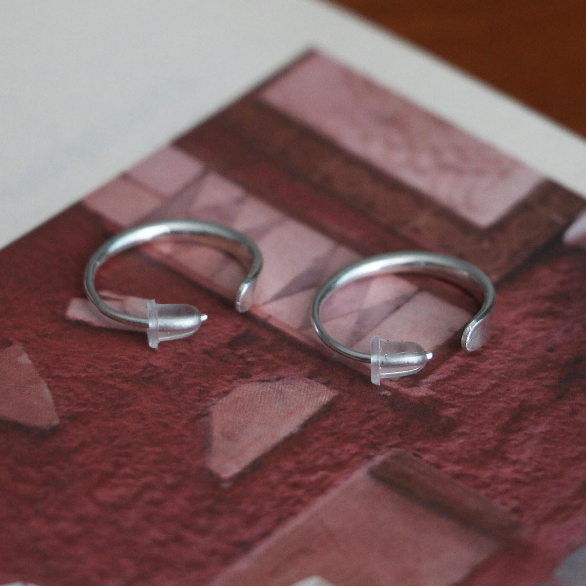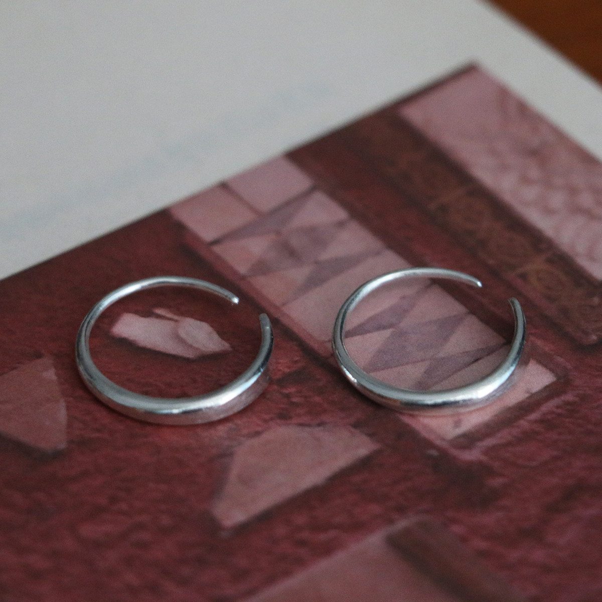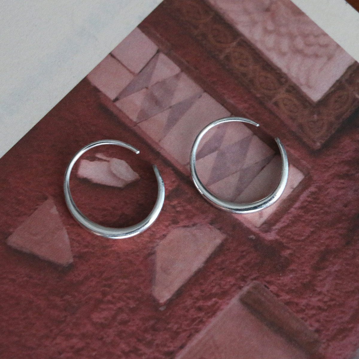 📚 999纯银手工原创设计小众C形复古质感耳环大小可定制