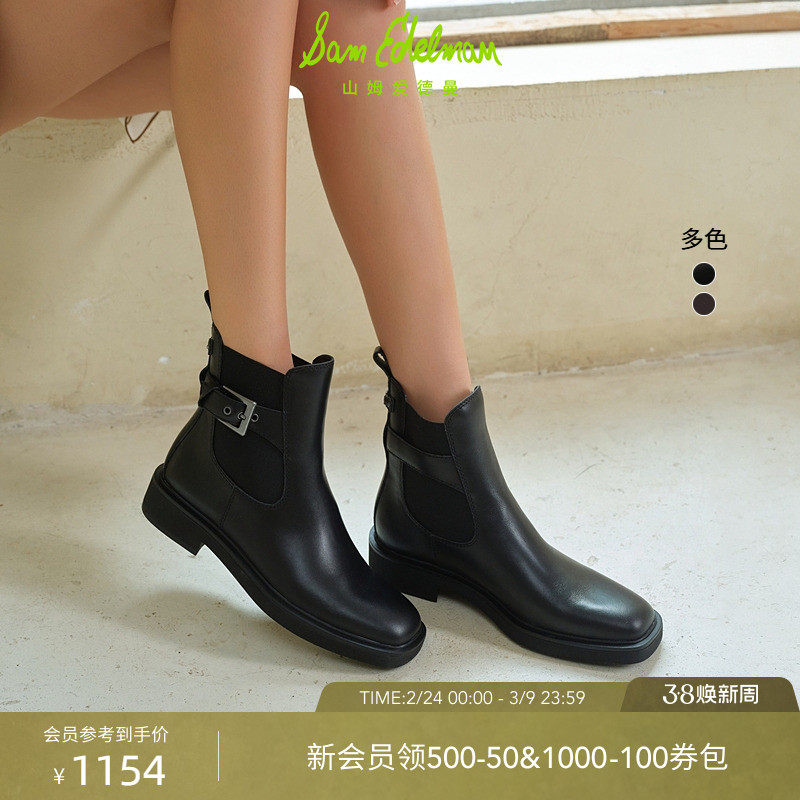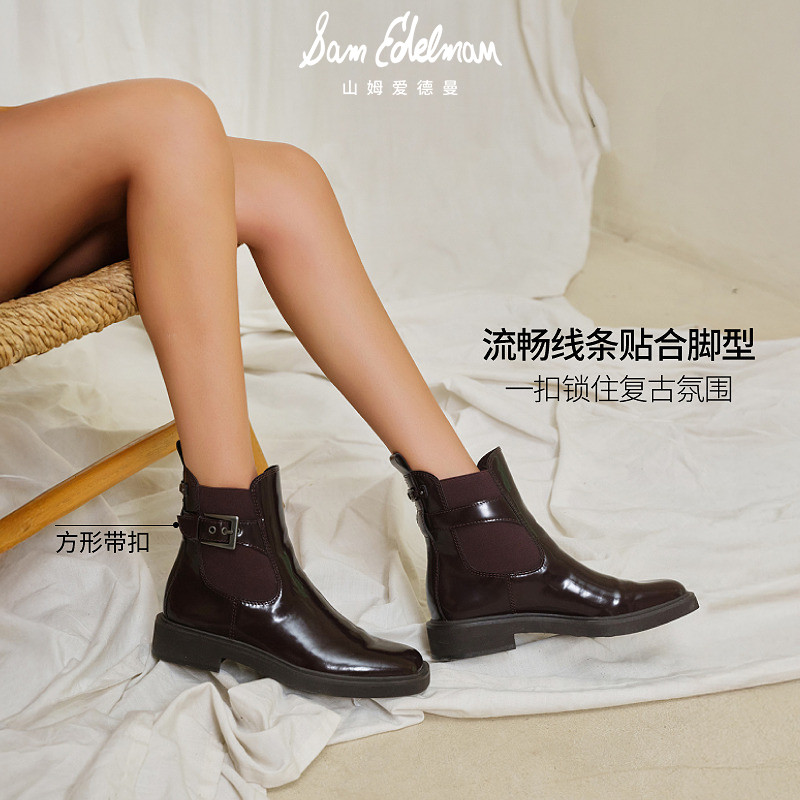 📚 SAM EDELMAN山姆爱德曼冬季牛皮带扣复古切尔西短靴黑女NADIYA