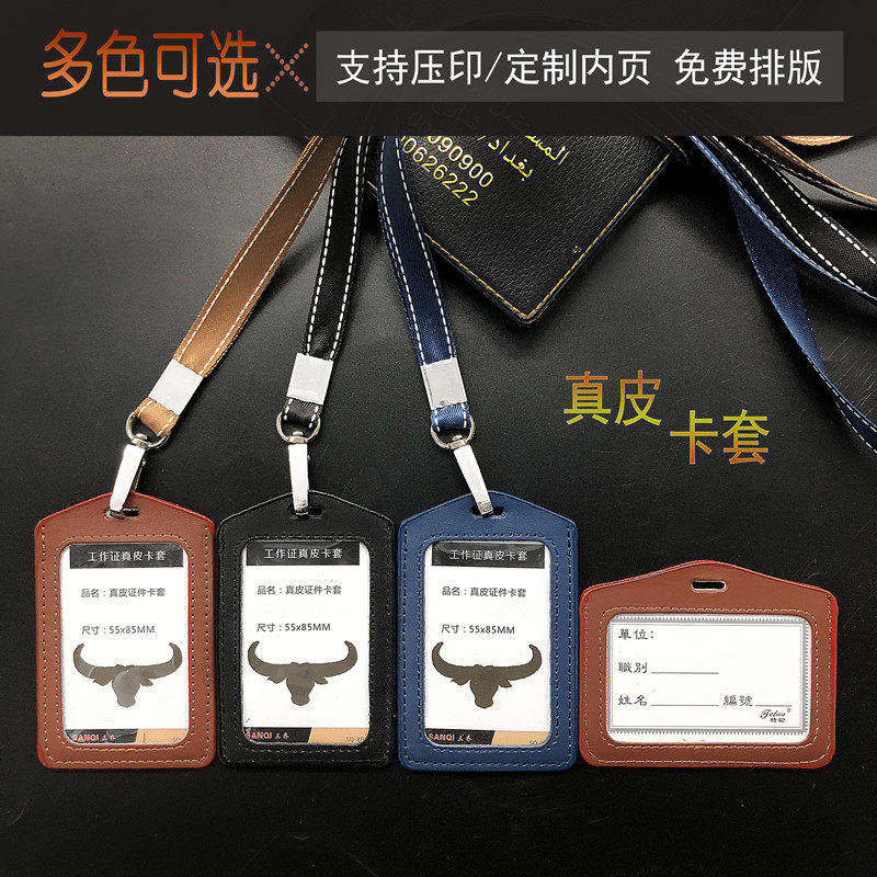 📚 工作牌胸牌可定制卡套证件套员工带挂绳高档真皮工作证门禁厂牌