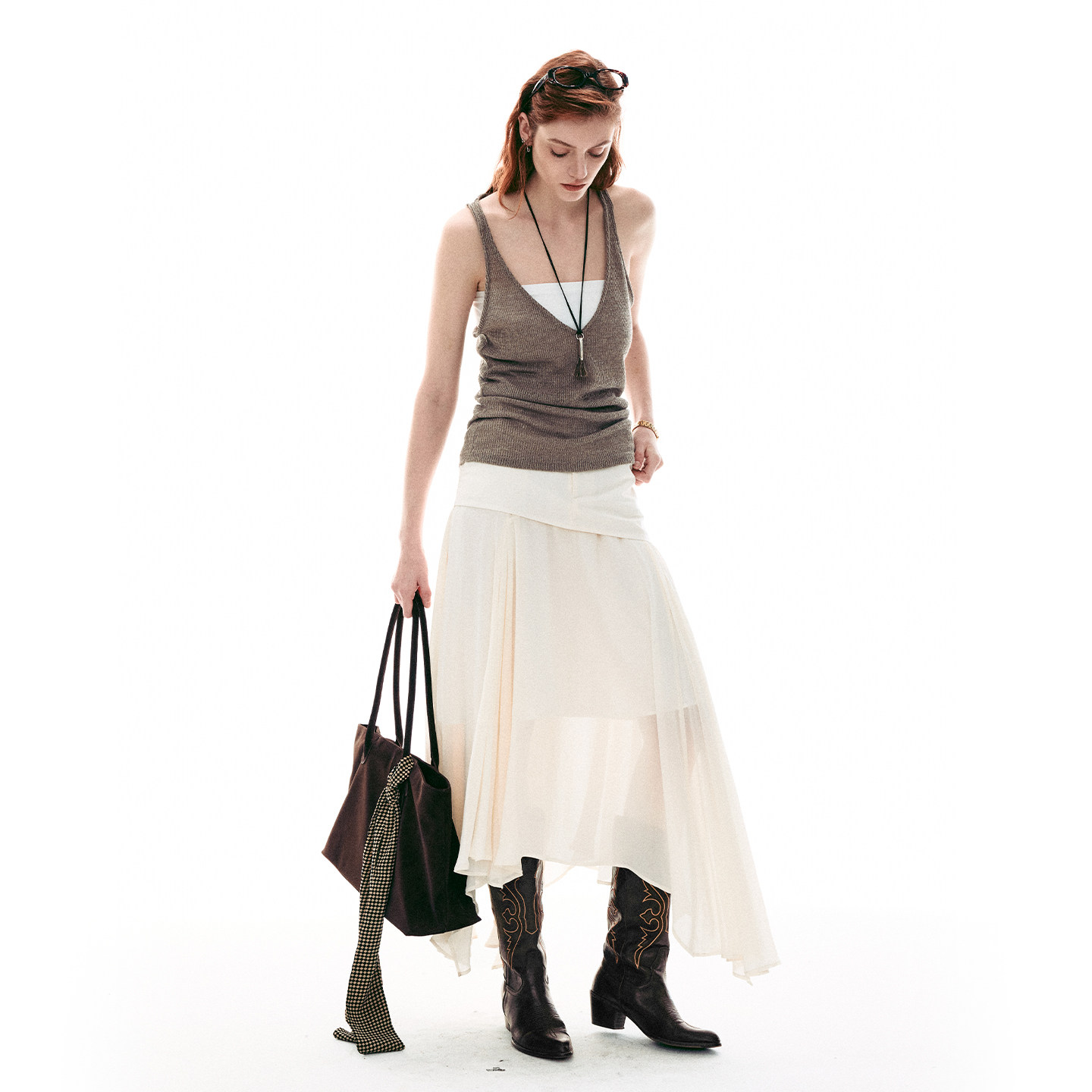 📚 SINGLE MOMENT 26SS法式百搭休闲流动不规则假两件丝质不对称半裙