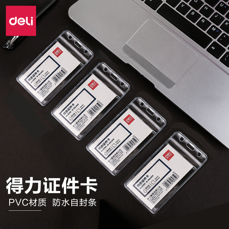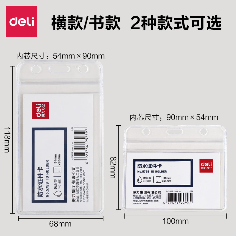 📚 得力5758/5759证件卡套 横式竖式卡套防水型塑料工作证胸牌保护套