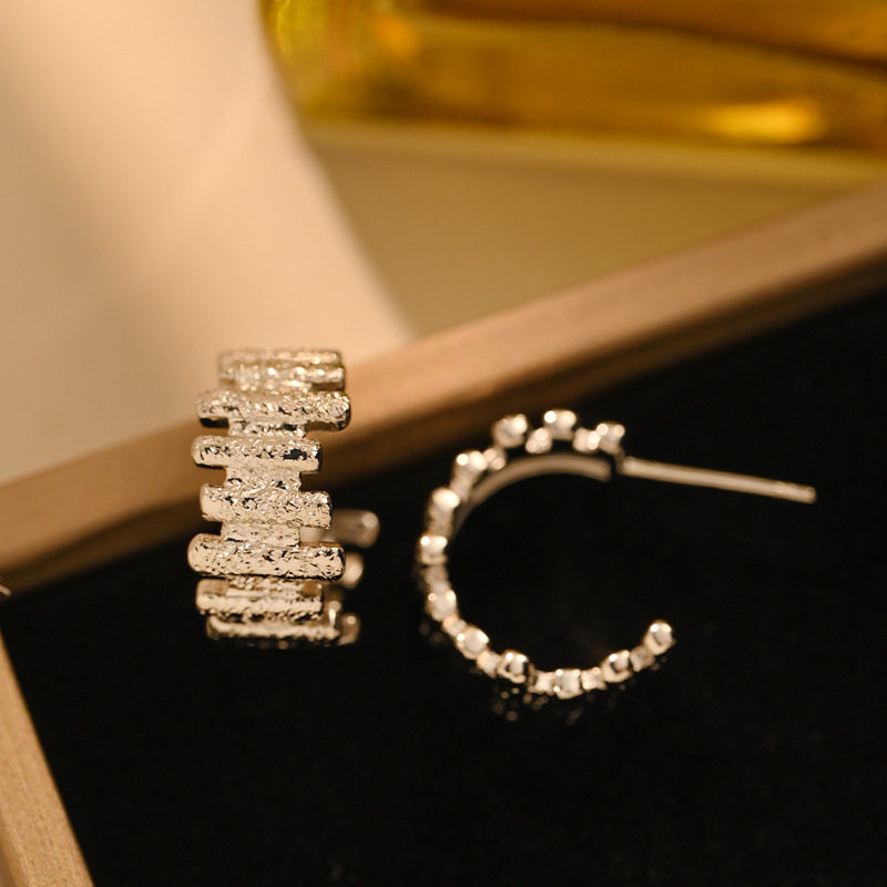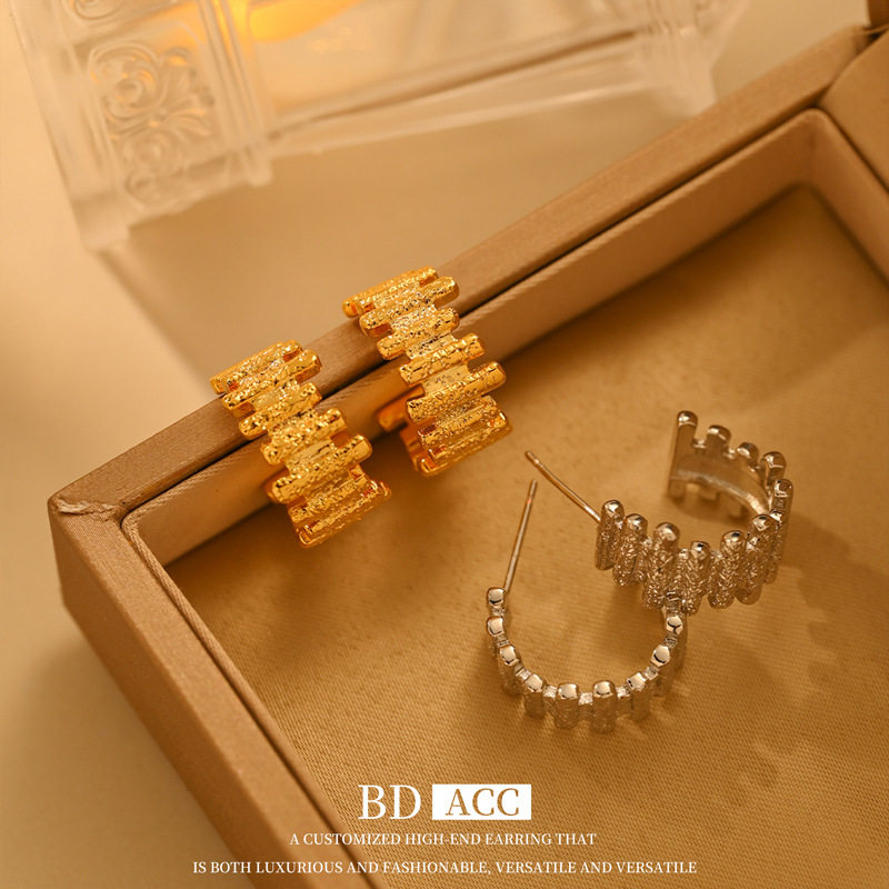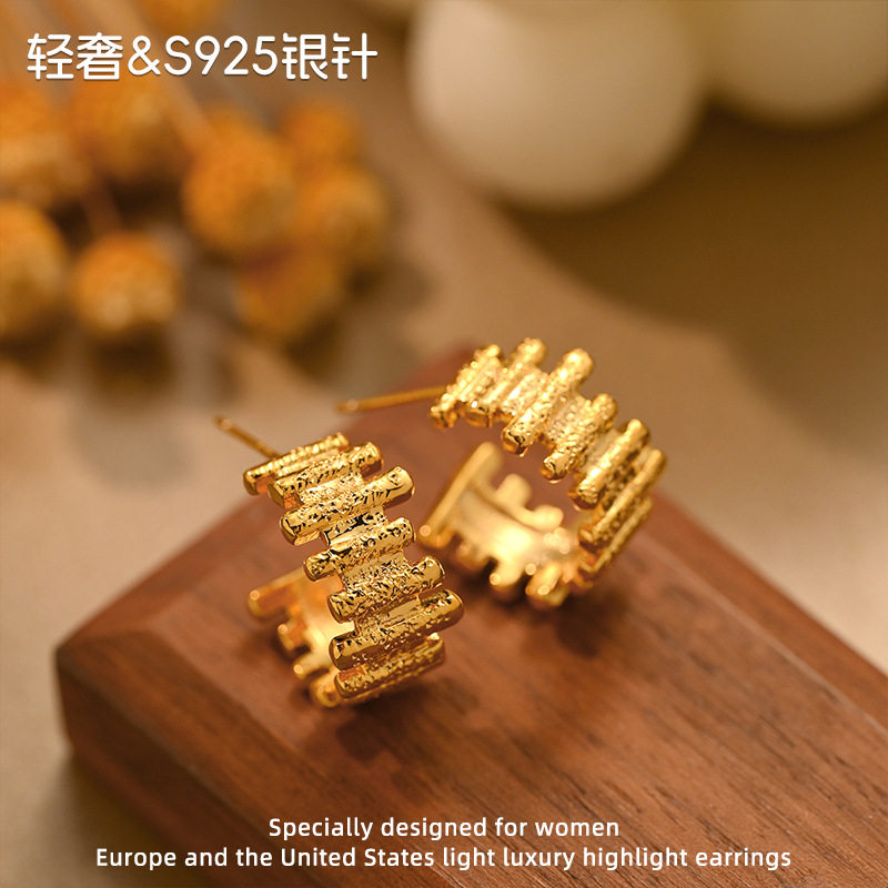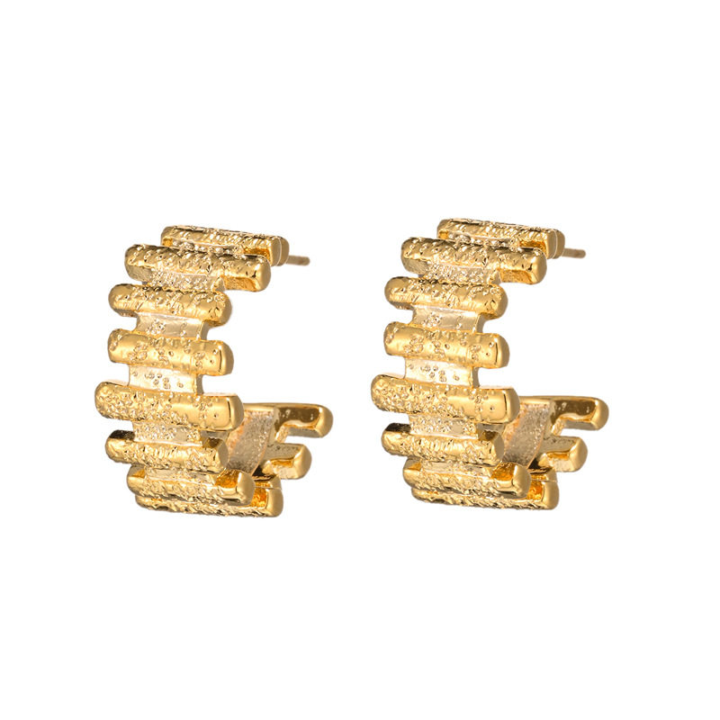 📚 欧美风C型半圆铜镀真金耳圈栅栏设计感通勤百搭时尚耳环跨境耳饰