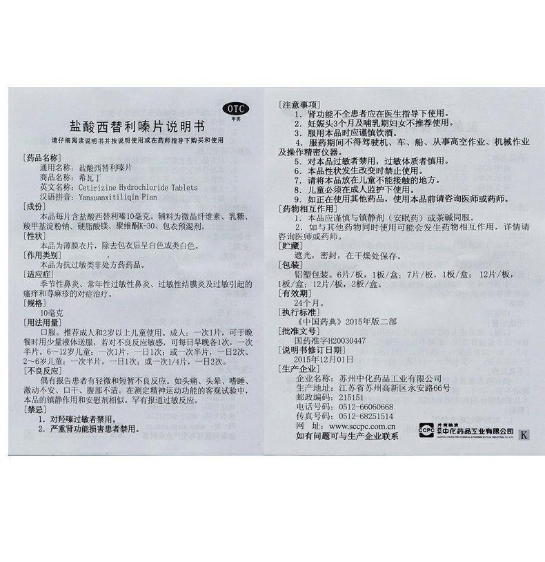 📚 希瓦丁 盐酸西替利嗪片12片 西替利秦片西替利嗉西替利西利替嗪片