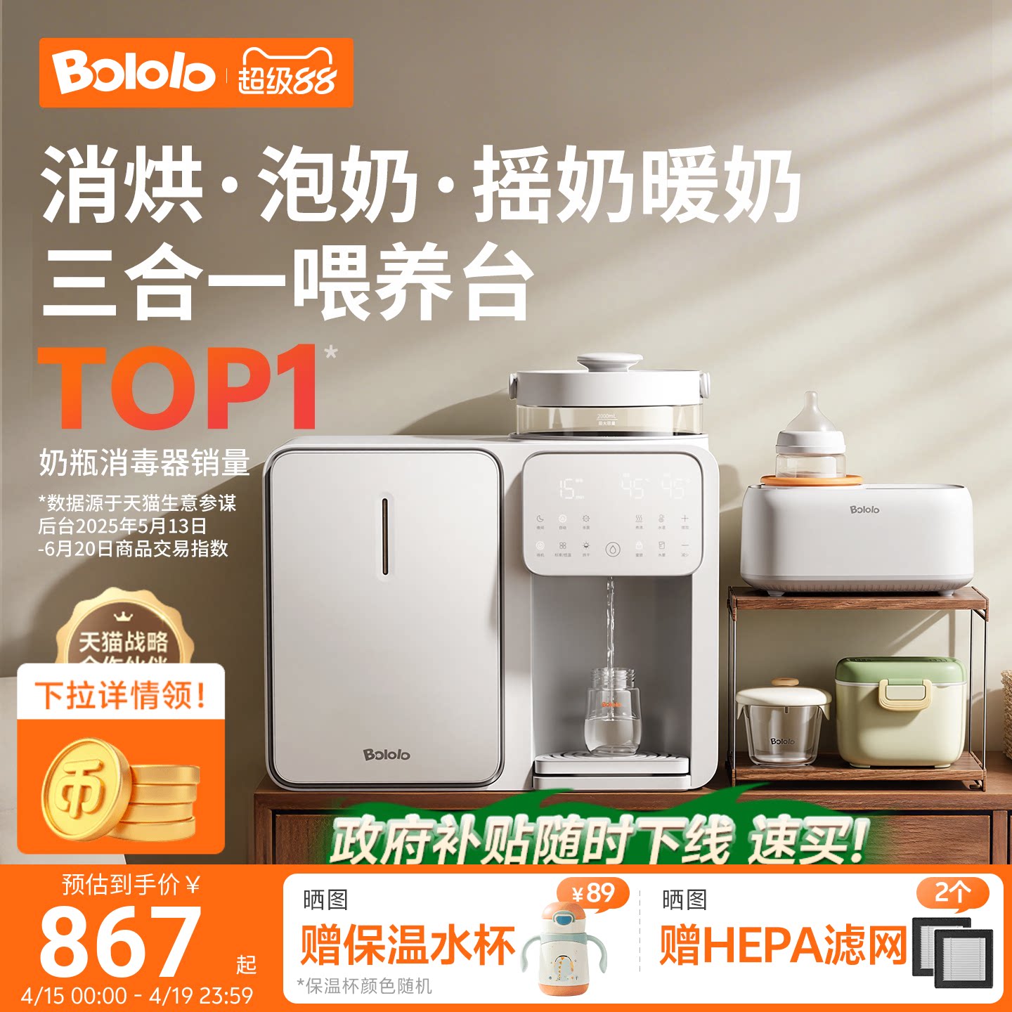 💥爆款来袭!波咯咯紫外线奶瓶消毒柜、婴儿恒温水壶直落水泡奶机二三合一喂养台,券后价仅需1205元💥