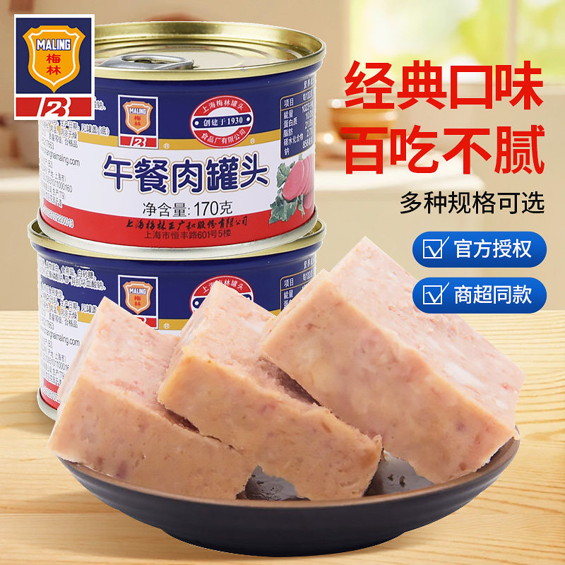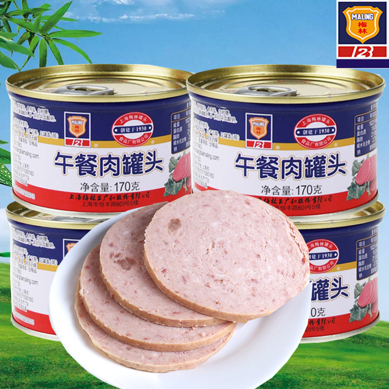 📚 上海梅林午餐肉罐头170g猪肉即食火腿肠熟食家庭长期储备应急食品