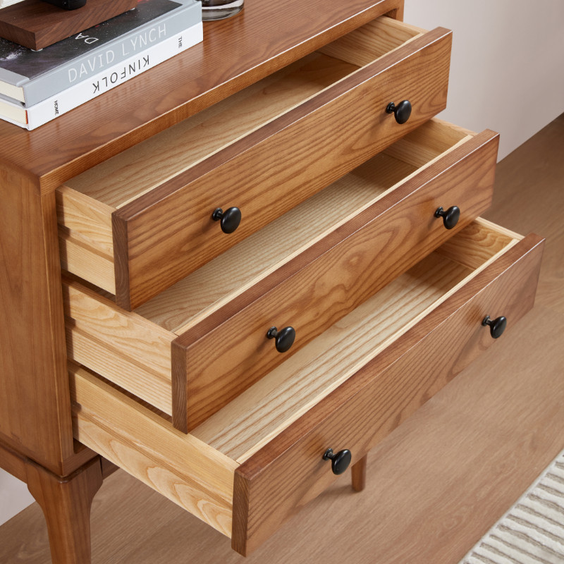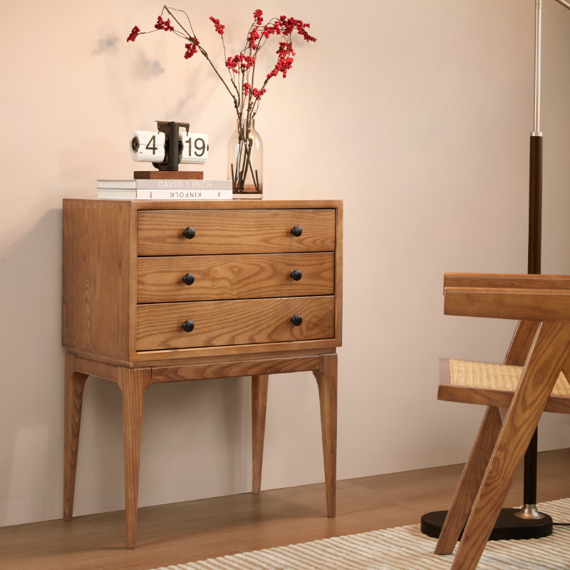 📚 实木三斗柜床头柜侧边柜客厅可移动边几角柜白腊木收纳储物抽屉柜
