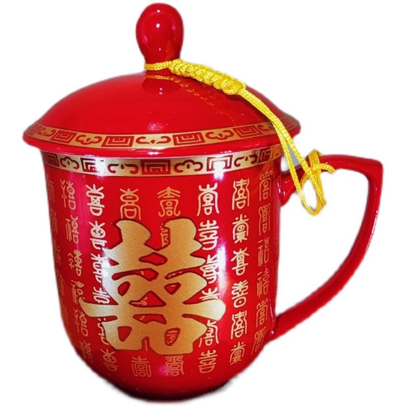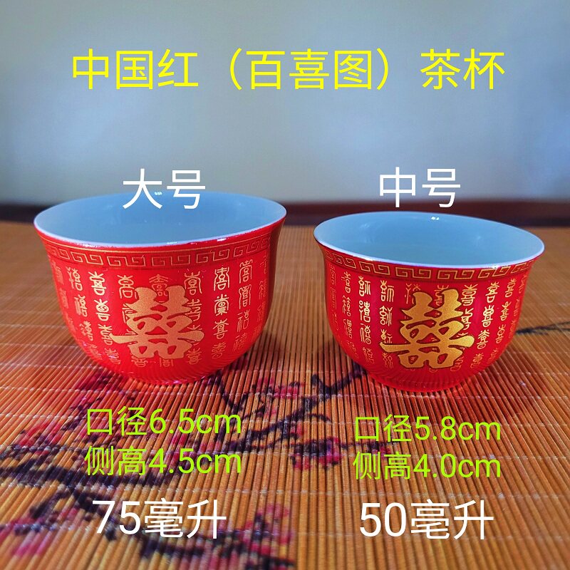 📚 结婚红色茶壶敬茶杯套装做好事喜碗改口杯描金百喜图茶具衣食饭碗