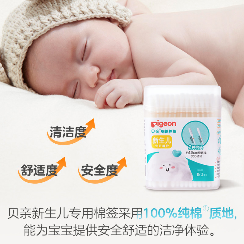 📚 宝宝细轴棉棒 新生儿耳鼻用耳孔清洁棉签棉球【贝亲官方旗舰店】