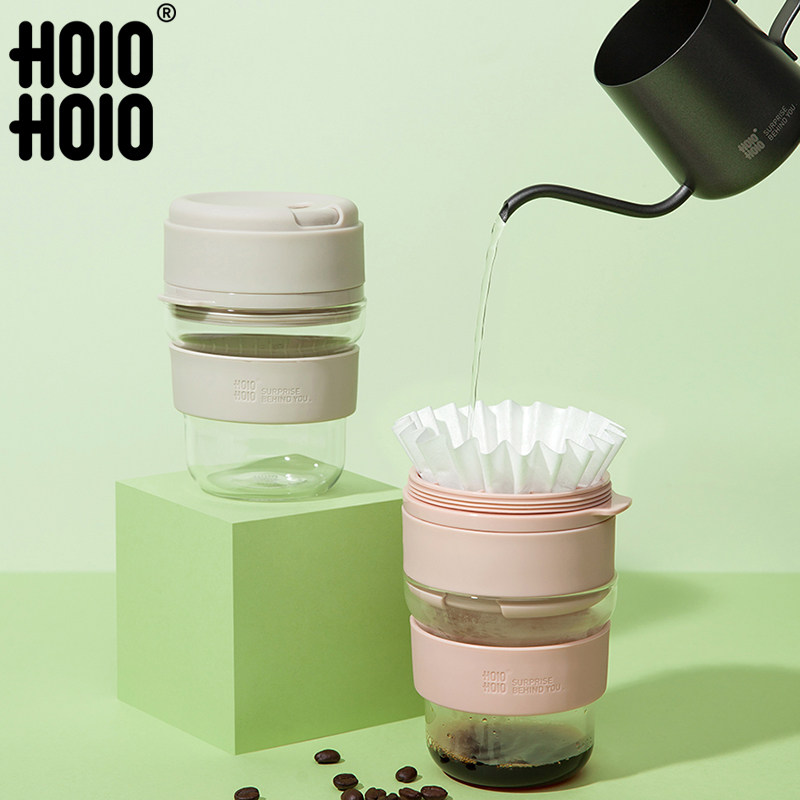 📚 HoloHolo便携咖啡杯 耐热玻璃手冲过滤杯便携篮型蛋糕滤杯300ml