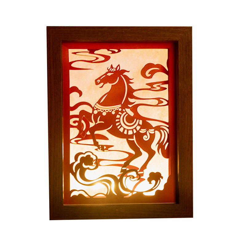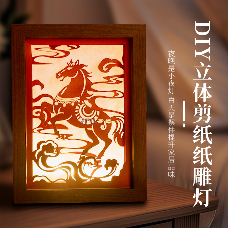 📚 新年马年纸雕灯diy材料包非遗文创剪纸手工锦鲤立体相框画小夜灯