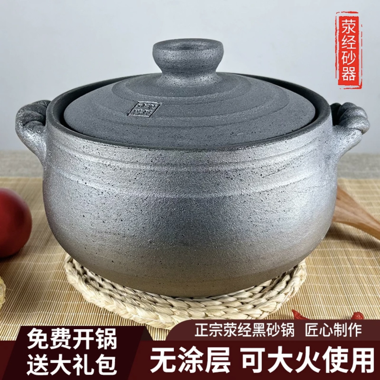 📚 非遗荥经黑砂锅明火烧不裂手工老式炖汤锅燃气电陶炉通用煲汤煮粥