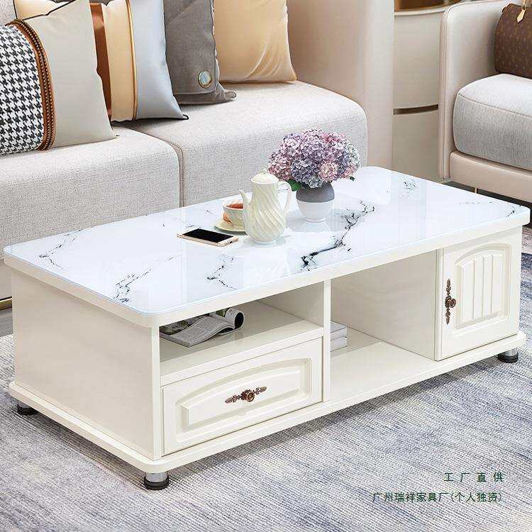 📚 茶几桌客厅家用欧式大理石电视柜组合现代简约小户型圆角玻璃茶几